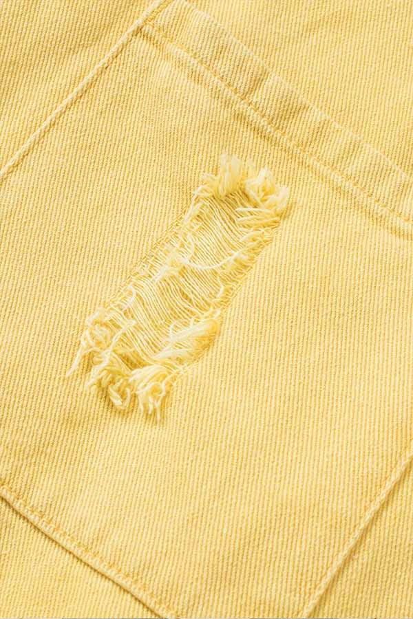 - Details: Pocket, Raw Hem, Ripped, Button